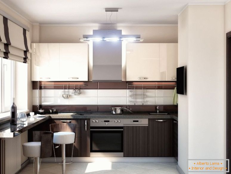 Y el área de trabajo en la cocina está revestida con azulejos, modelando ladrillos. En combinación con una araña de cristal, todo se ve bastante impresionante.