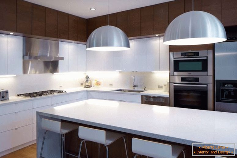 Además, un sistema de iluminación bien diseñado que consta de varios niveles jugó un papel importante. Aquí se utilizan apliques, una lámpara y una lámpara de pie que iluminan un área pequeña, y techos en el techo, diseñados para la expansión visual de las paredes gracias a un juego de luz creado de manera competente.