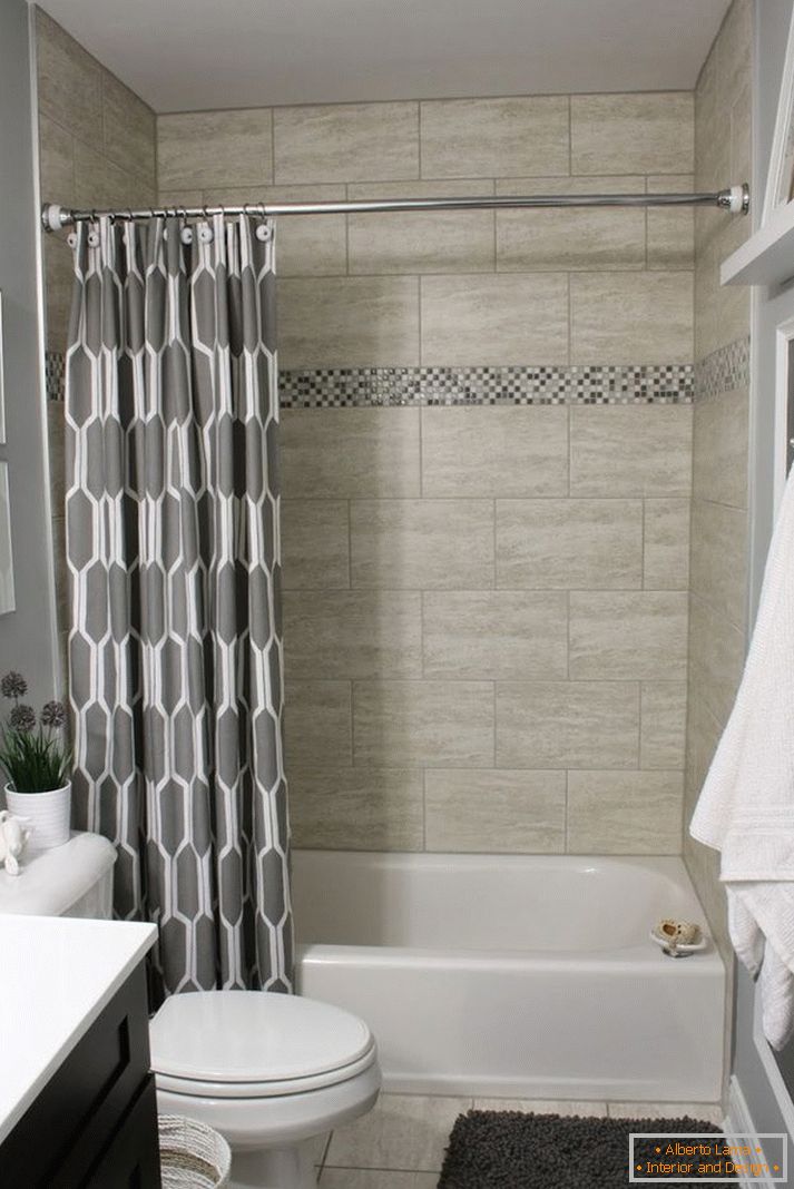 La solución de diseño es curiosamente la iluminación correctamente seleccionada en estilo ecológico. Las lámparas de techo simulan caídas de agua.